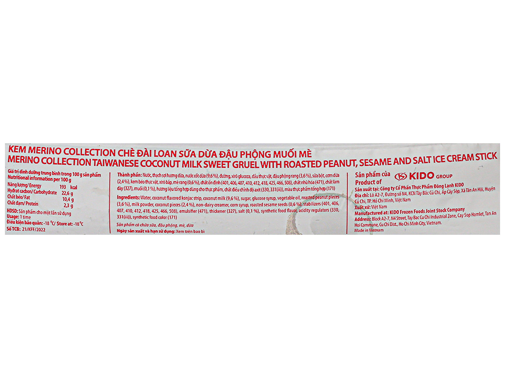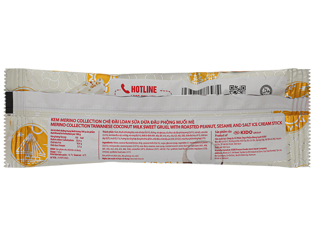 Kem chè Đài Loan sữa dừa đậu phộng muối mè Merino cây 65g