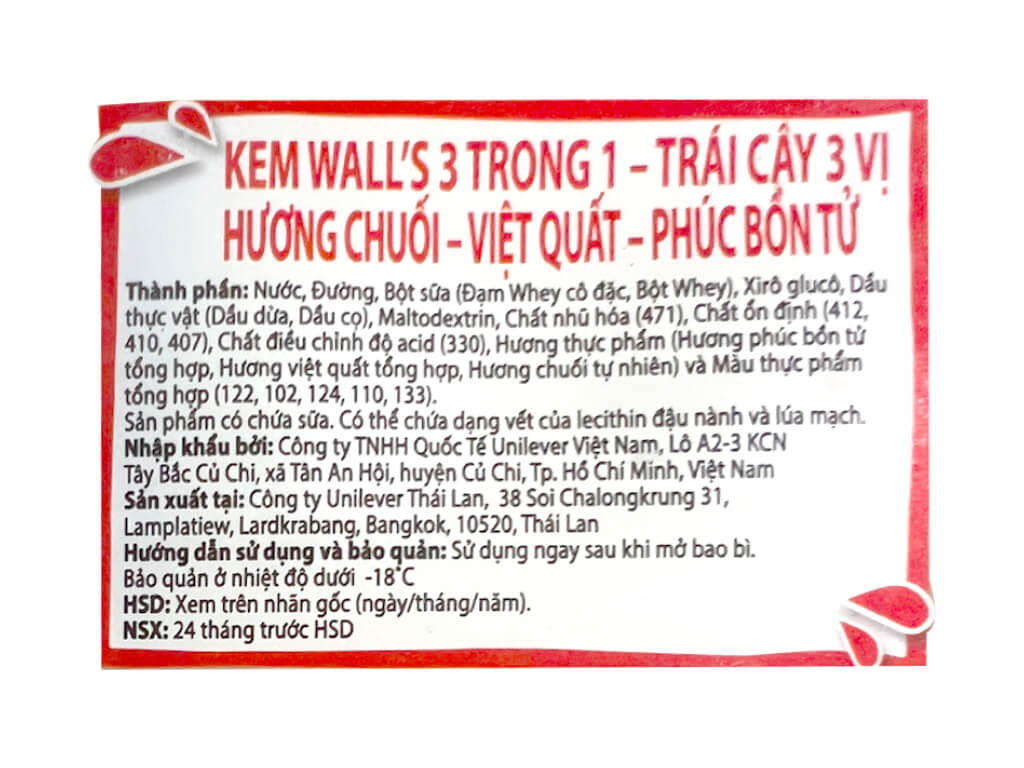 Kem hộp chuối, việt quất và phúc bồn tử Wall's 3in1 hộp 425g