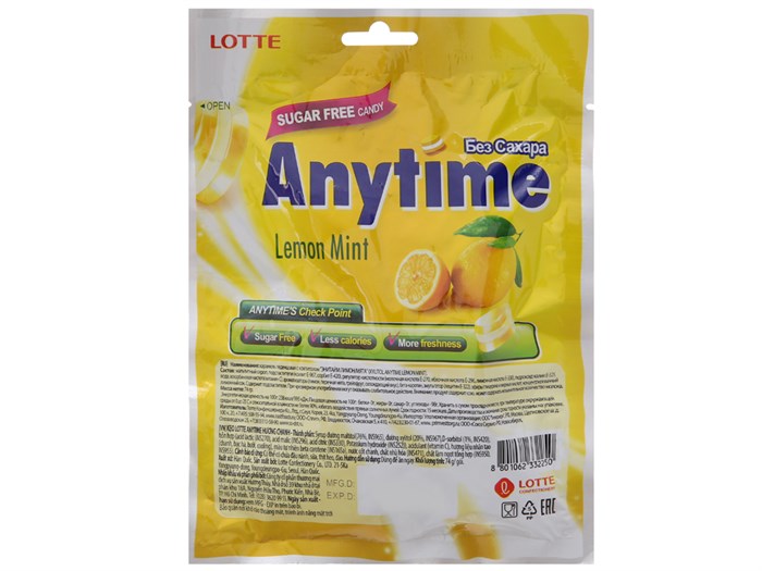 Kẹo ngậm không đường chanh bạc hà Anytime gói 74g