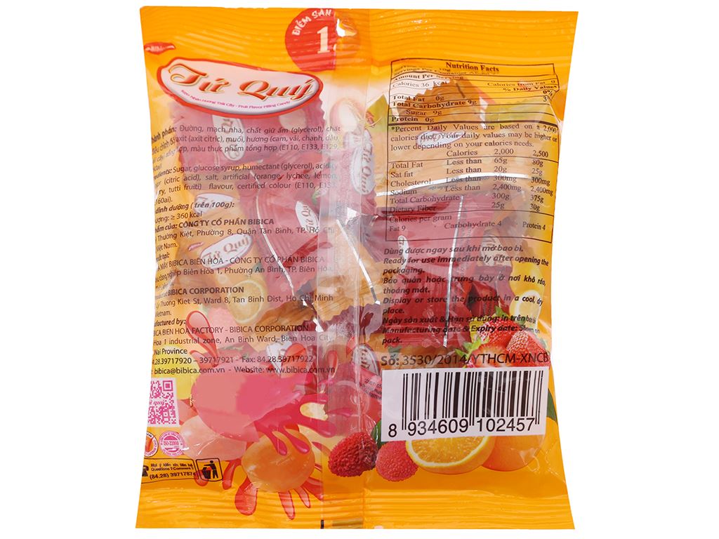Kẹo nhân hương trái cây Tứ Quý gói 70g