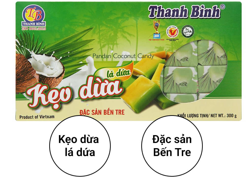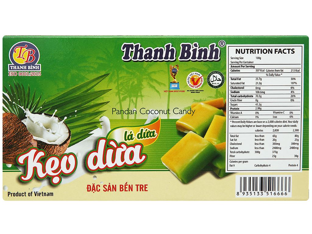 Kẹo dừa lá dứa Thanh Bình Đặc sản Bến Tre hộp 300g