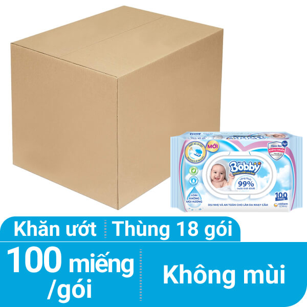 Khăn ướt em bé Bobby không mùi gói 100 miếng