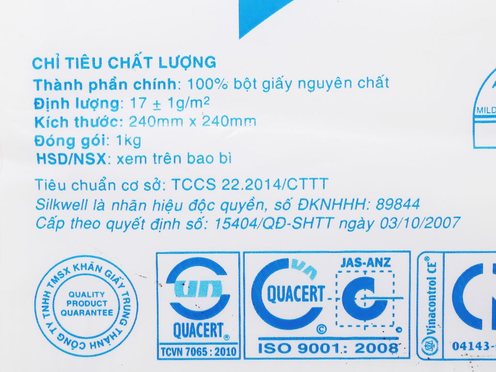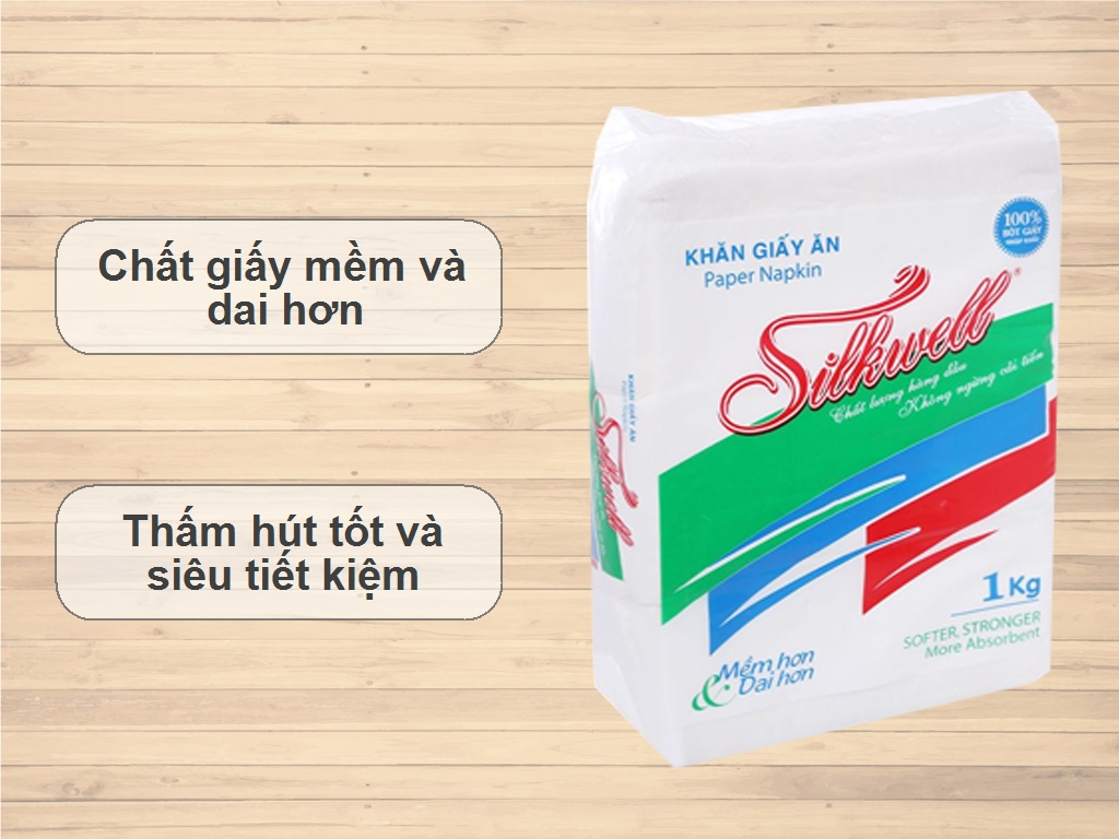 Khăn giấy ăn Silkwell 1 lớp 1kg 24x24cm
