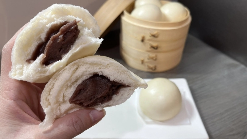 Bánh bao chín có lớp vỏ trắng mềm, thơm nhẹ, kết hợp cùng nhân đậu đỏ bùi ngọt và thoang thoảng hương cacao. Đây là món ăn sáng hoặc bữa xế lý tưởng, vừa ngon miệng vừa bổ dưỡng.