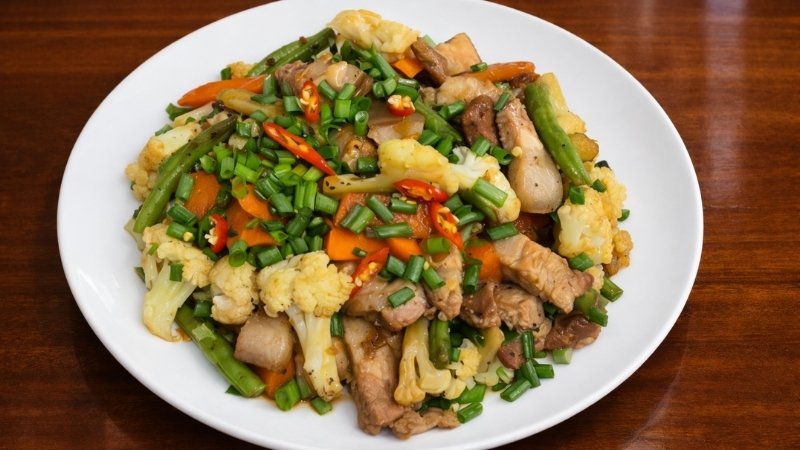 Không cầu kỳ nhưng đủ tinh tế, thịt heo xào rau củ là lựa chọn phù hợp để cân bằng hương vị trong những ngày Tết nhiều món đậm đà. Chỉ với vài bước đơn giản, bạn đã có thêm một món ăn vừa ngon miệng, vừa đẹp mắt cho mâm cơm sum vầy.