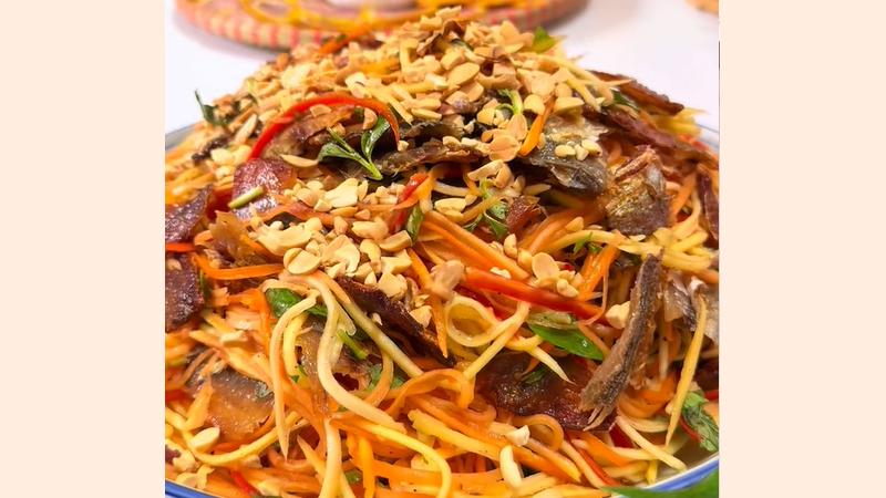 Ngày Tết, bên cạnh bánh mứt quen thuộc, những món gỏi chua cay luôn được ưu ái vì dễ ăn, không ngán và rất hợp để lai rai trò chuyện. Đặc biệt, gỏi khô cá chỉ vàng là món “chân ái” của nhiều gia đình bởi hương vị đậm đà, thơm mùi cá nướng, xen lẫn vị chua giòn của xoài xanh. Cùng bắt tay vào thực hiện ngay nhé!
