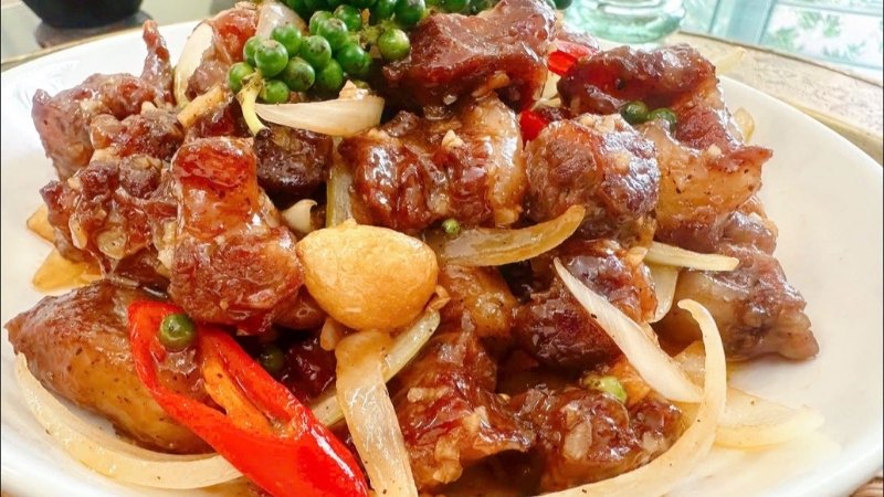 Cách làm món bò cháy tỏi sốt tiêu xanh