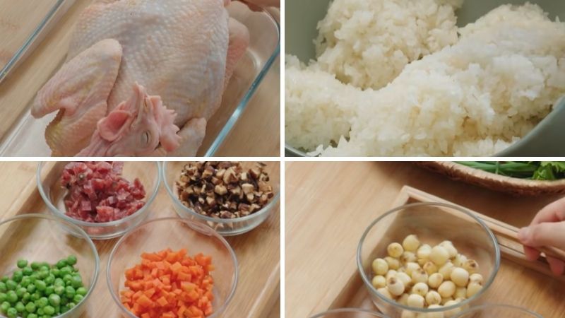 Bước 2: Ướp gà và chuẩn bị nhân xôi