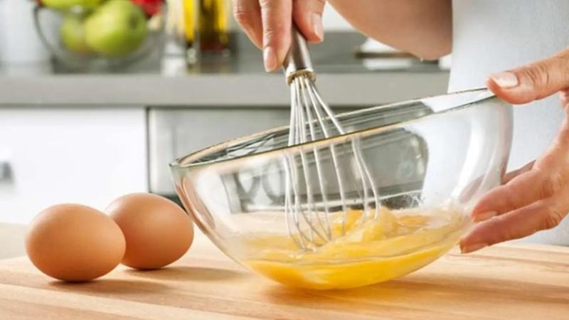 Đập 2 quả trứng vào bát, thêm vào 1/2 muỗng cà phê hạt nêm, 1/4 muỗng cà phê bột ngọt và một ít tiêu xay. Dùng đũa đánh tan để trứng thấm gia vị, khi xào món ăn sẽ đậm đà hơn.