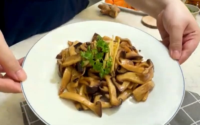 Nấm đùi gà kho gừng sau khi hoàn thành có màu nâu óng nhẹ, nấm chín mềm nhưng vẫn giữ được độ giòn ngọt tự nhiên. Gừng sợi dậy mùi thơm, hòa quyện cùng phần sốt đậm đà, tạo cảm giác ấm bụng và rất đưa cơm khi thưởng thức.