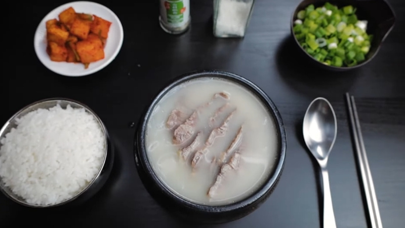 Món ăn này thường được người Hàn dùng kèm với cơm trắng hoặc sợi bún, miến, cùng với các loại kim chi để cân bằng vị béo của súp, tạo nên sự kết hợp hương vị hoàn hảo.