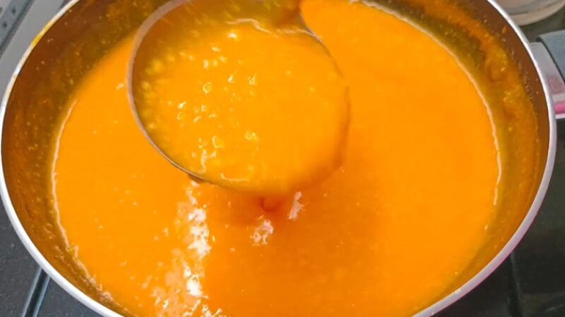 Để sốt có màu vàng đẹp mắt hơn, bạn có thể cho thêm 1 vá nhỏ dầu hạt điều vào và khuấy đều. Bạn tiếp tục nấu sốt trên lửa nhỏ cho đến khi đạt được độ sánh mong muốn. Khi sốt đã hoàn thành, bạn tắt bếp và để nguội hoàn toàn. Cuối cùng, bạn cho sốt vào hũ đậy kín và bảo quản trong ngăn mát tủ lạnh để dùng dần.