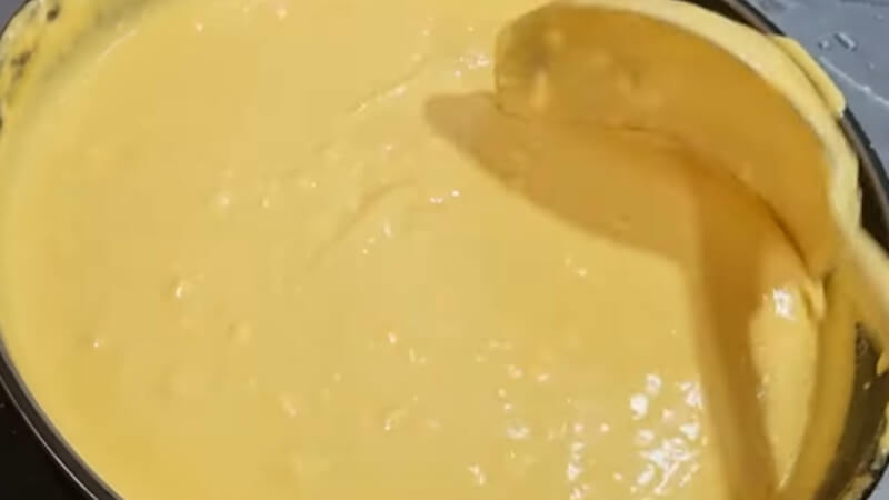 Đặt nồi hỗn hợp sữa trứng lên bếp. Ban đầu, bật lửa lớn và vừa khuấy liên tục để hỗn hợp nóng đều. Khi hỗn hợp bắt đầu sôi, hãy lập tức hạ lửa xuống mức vừa. Tiếp tục khuấy cho đến khi hỗn hợp sệt lại và có độ đặc mong muốn thì tắt bếp.