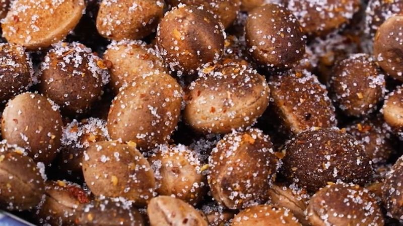 Sau khi lắc xong, bạn nên để trái xay nghỉ khoảng 15-20 phút. Lúc này, gia vị sẽ ngấm sâu hơn, phần thịt xay hơi tươm nước, hòa quyện cùng muối ớt tạo nên một hỗn hợp chua - cay - mặn - ngọt cực kỳ kích thích.