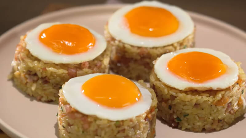 Đập 1 quả trứng gà vào chén. Cho dầu ăn vào chảo, khi chảo nóng đều, đổ trứng vào chảo. Ngay khi rìa trứng bắt đầu se lại nhưng lòng trứng vẫn còn hơi ướt, nhẹ tay lấy trứng ra để giữ phần lòng đào. Có thể dùng khuôn trong để tạo hình trứng, giúp trứng tròn hơn.