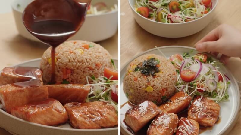 2Cách làm cơm rang cá hồi xốt teriyaki