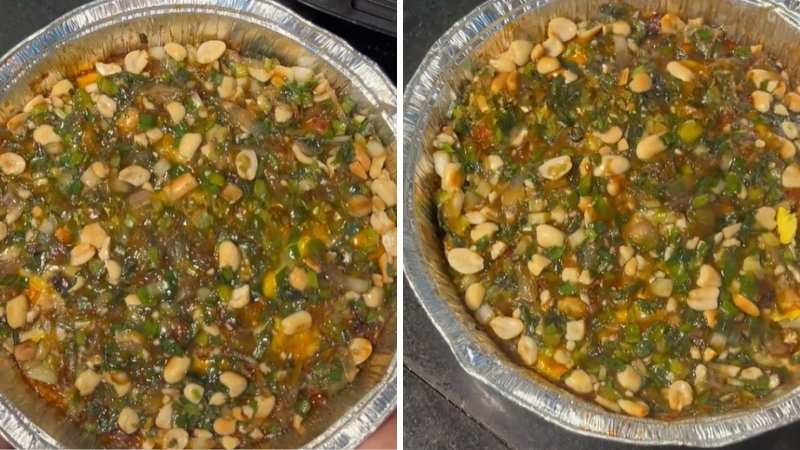 Món hàu nướng mỡ hành khi hoàn tất sẽ có vẻ ngoài vô cùng bắt mắt với sự kết hợp màu sắc hài hòa. Thịt hàu trắng ngần, căng mọng nằm dưới lớp mỡ hành xanh mướt, hành phi vàng óng và đậu phộng bùi béo, tạo nên một tổng thể cực kỳ hấp dẫn.