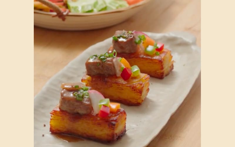 Sau khi nướng, chiên xong, khoai tây ngàn lớp có bề mặt vàng nâu đẹp mắt, các lớp khoai xếp đều tăm tắp, viền ngoài giòn rụm nhưng không khô. Phần bên trong mềm mịn, thấm đều bơ sữa béo ngậy, cắt ra không bị vỡ mà giữ nguyên từng lớp rõ ràng, rất bắt mắt và hấp dẫn.
