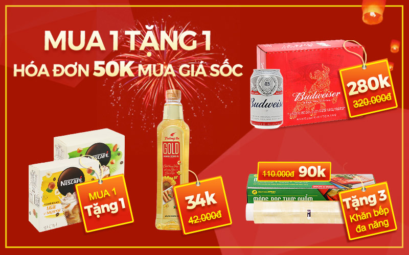 Từ ngày 22/1/2021 đến 28/1/2021, khi khách hàng mua hóa đơn từ 50.000 sẽ được mua thêm sản phẩm với giá cực sốc và chương trình khuyến mãi mua 1 tặng 1 siêu hấp dẫn, cùng tìm hiểu nhé!