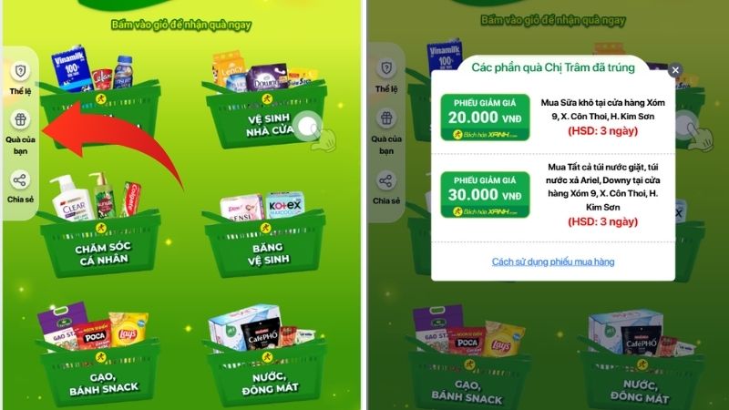 Mục "Quà của tôi" trên App Bách Hóa XANH