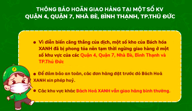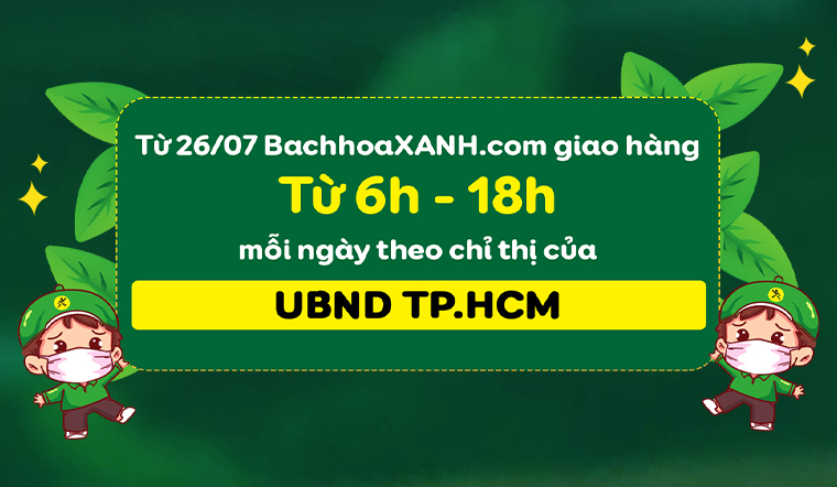 Từ 26/07, BachhoaXANH.com giao hàng từ 6h-18h mỗi ngày ở TP.HCM theo chỉ thị 12 của UBND TP