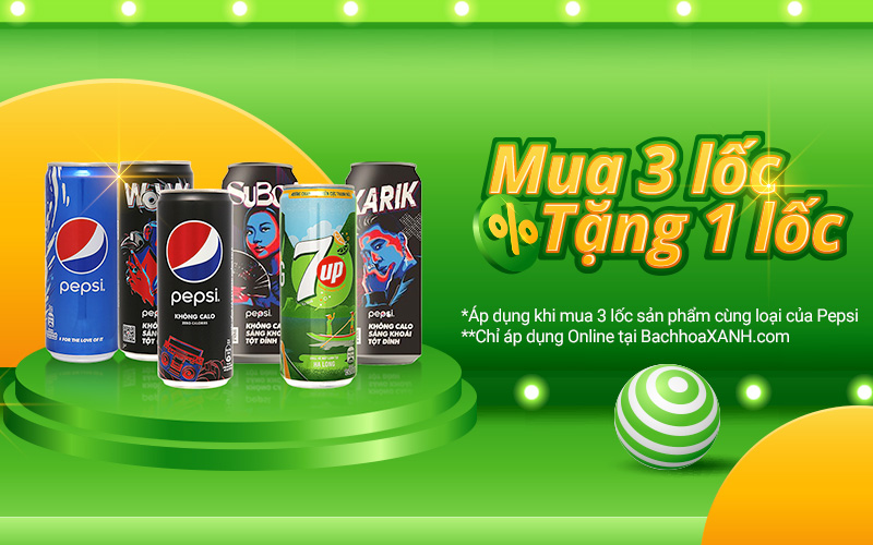 Nội dung chương trình: Từ ngày 30/11 - 13/12/2021, khách hàng khi mua 3 lốc sản phẩm cùng loại của Pepsi tại Bách hóa XANH sẽ được tặng ngay 1 lốc bất kỳ.