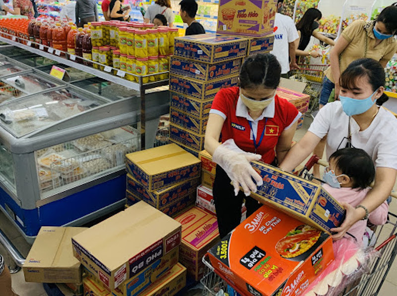Sau khi có thông tin về ca nhiễm Covid-19 thứ 17. Người dân đã đổ xô ra các siêu thị, trung tâm thương mại, cửa hàng tiện lợi để mua nhu yếu phẩm về dự trữ trong nhà.