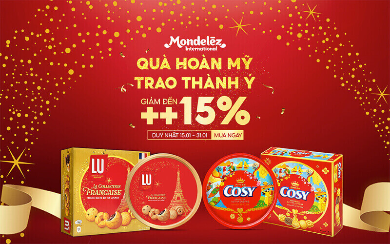 Từ ngày 15/01 - 31/01/2022, Bách hóa XANH diễn ra chương trình ưu đãi đặc biệt lên đến 15% cho một số sản phẩm bánh quy bơ cao cấp của Mondelez.