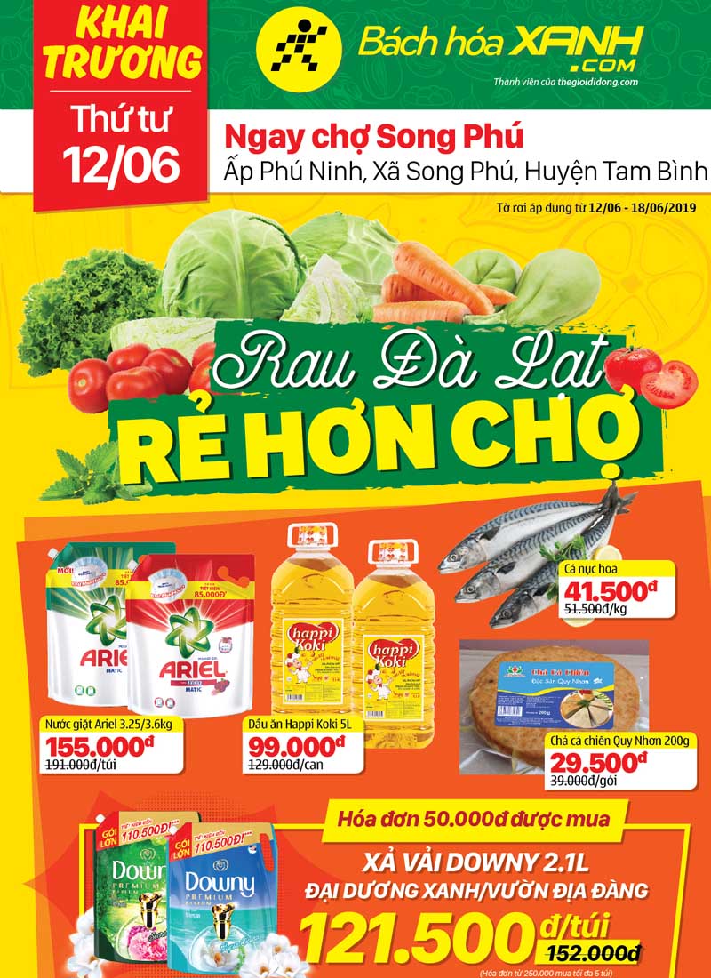 Hệ thống siêu thị Bách hoá XANH hân hoan giới thiệu thành viên mới tại Ấp Phú Ninh, Xã Song Phú, Huyện Tam Bình, Tỉnh Vĩnh Long sẽ được khai trương vào ngày 12/06/2019.