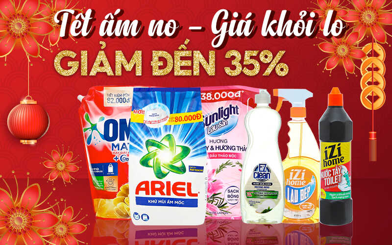 Từ ngày 3/1 - 31/1/2022, Bách hóa XANH diễn ra chương trình "Tết ấm no, giá khỏi lo, giảm đến 35%" hàng loạt các sản phẩm vệ sinh nhà cửa đến từ các thương hiệu uy tín.