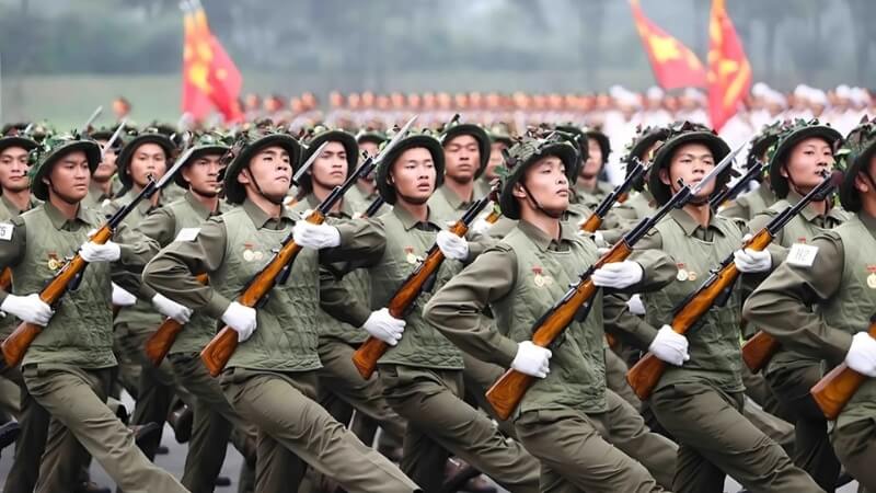 Chiến sĩ duyệt đội hình, ánh sáng chuẩn studio.