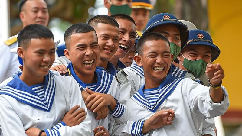 Dưới đây là những khoảnh khắc nụ cười và niềm vui của người lính, thể hiện tinh thần lạc quan, yêu đời.