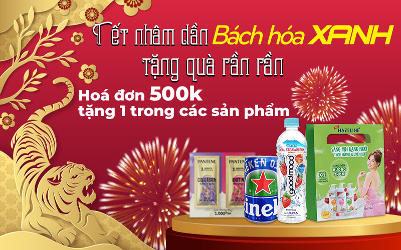Từ 7/1/ - 12/1/2022, diễn ra chương trình Tết Nhâm Dần Bách hóa XANH tặng quà rần rần. Với hóa đơn mua hàng online (TP.HCM) từ 500k tặng ngay 1 món quà hấp dẫn.