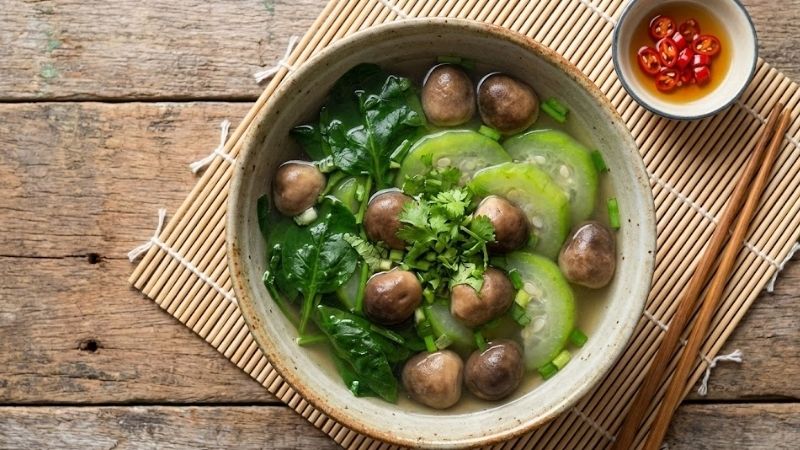 Bát canh khi hoàn thành sẽ tỏa ra hương thơm dịu nhẹ đặc trưng của mướp hương hòa quyện cùng sự thanh khiết của nấm. Nước canh trong, có vị ngọt thanh tự nhiên, mang lại cảm giác vô cùng mát mẻ và dễ chịu.