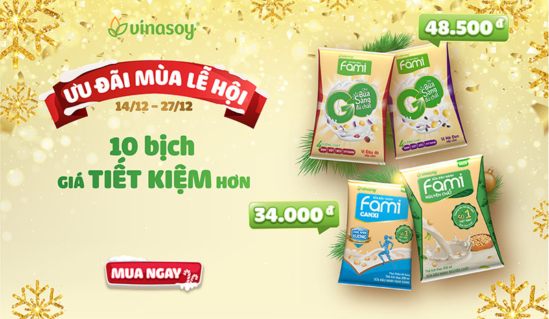 Ưu đãi bất ngờ dành cho tháng 12 cuối năm, từ ngày 14/12 - 27/12/2021 BachhoaXANH.com thực hiện chương trình khuyến mãi "Ưu đãi mùa lễ hội – giá tiết kiệm hơn với combo 10 bịch Fami" áp dụng cho tất cả khách hàng mua sắm trực tiếp tại cửa hàng hoặc mua tại website BachhoaXANH.com.
