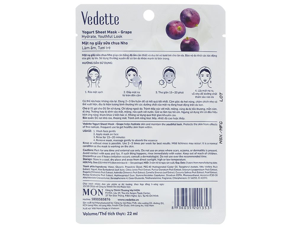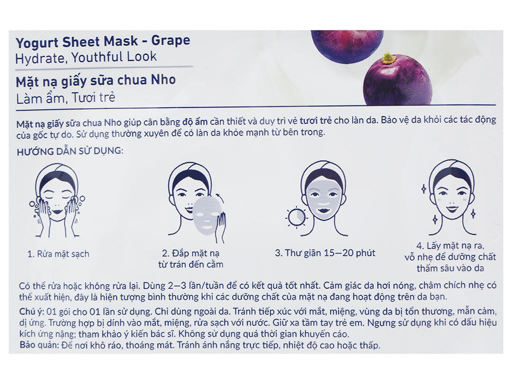 Mặt nạ giấy sữa chua nho Vedette 22ml