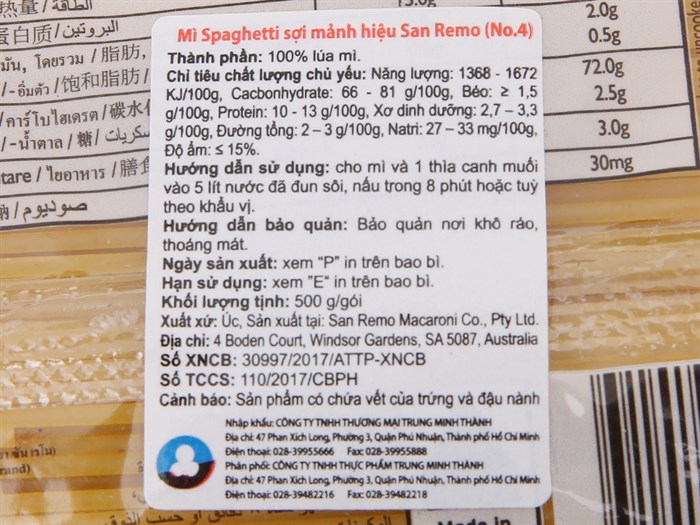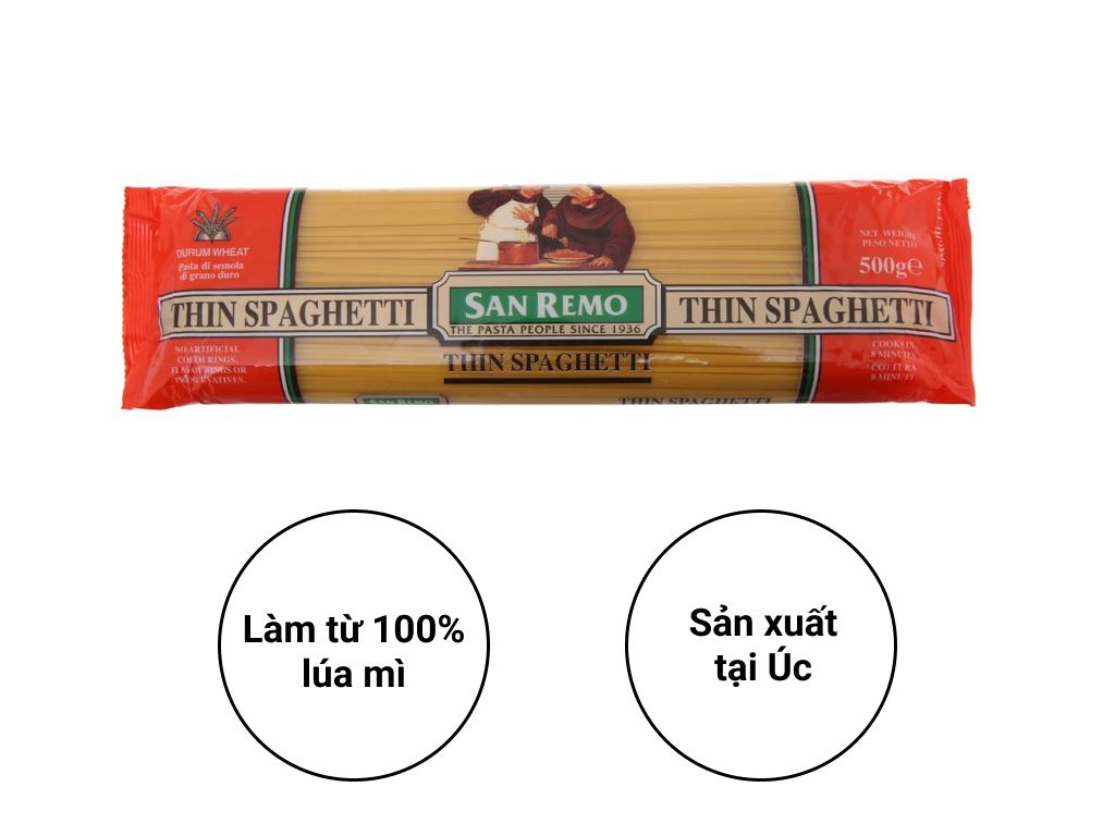 Mì Spaghetti số 4 sợi mảnh San Remo gói 500g