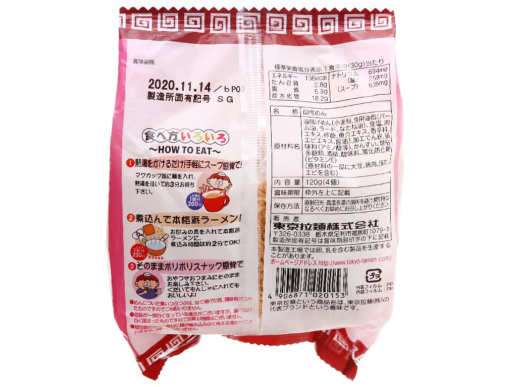 Lốc 4 gói mì Tokyo Noodle vị tôm thịt 30g
