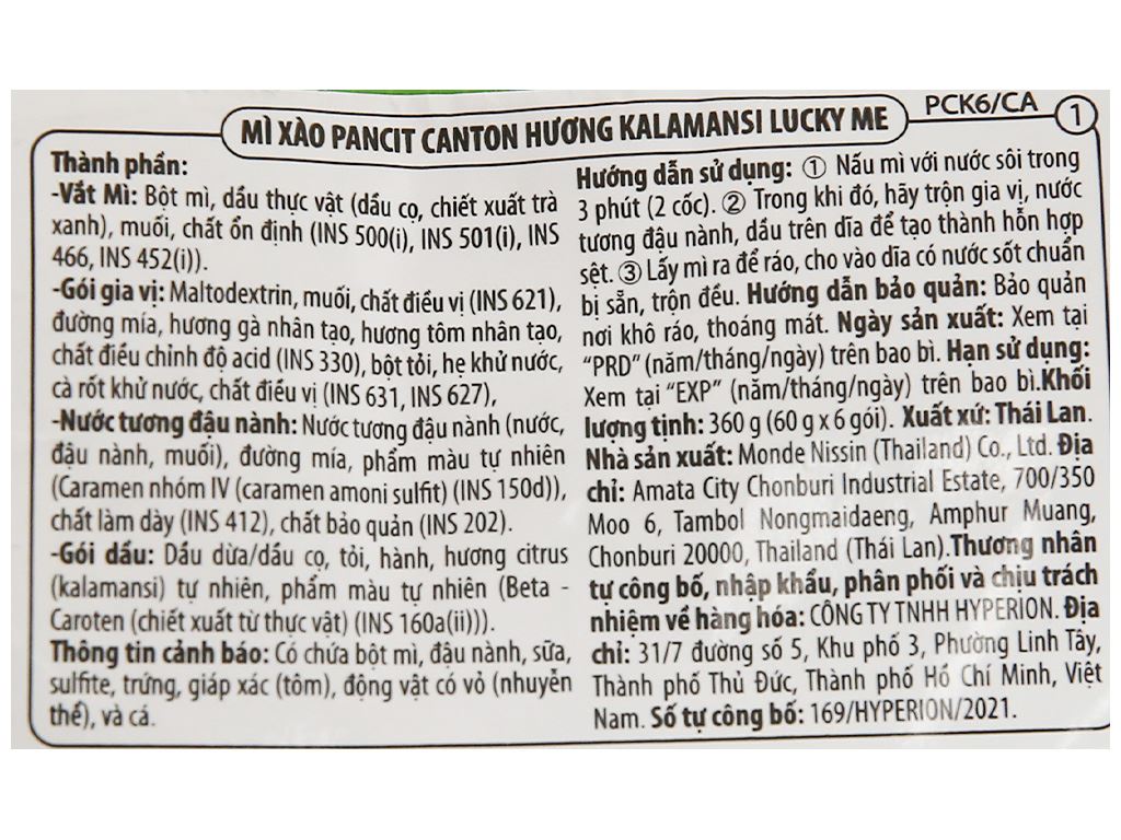 Lốc 6 gói mì xào Pancit Caton Lucky Me hương Kalamansi 60g