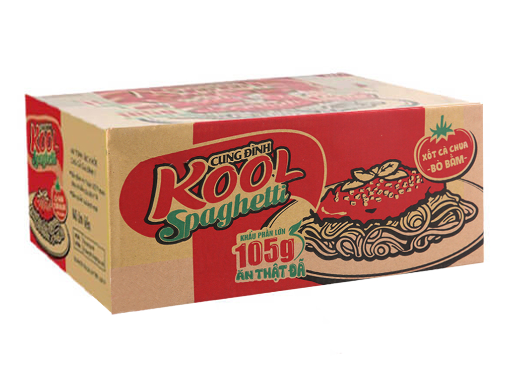Thùng 12 tô mì trộn Cung Đình Kool Spaghetti 105g (có gói xốt bò bằm)