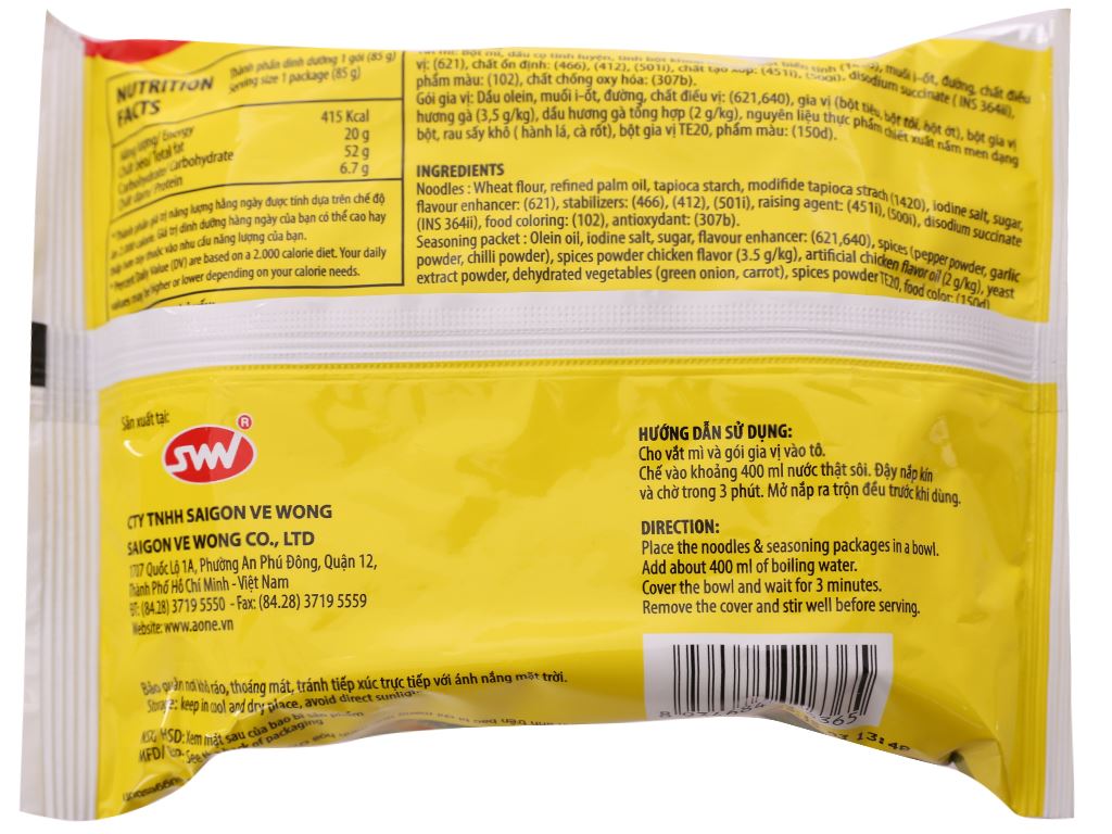 Thùng 30 gói mì gà A-One 85g