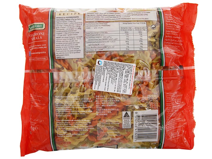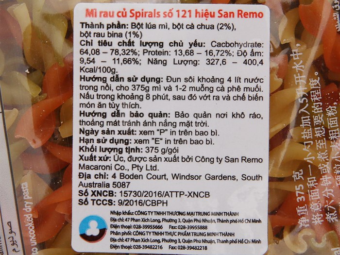 Nui rau củ xoắn Spirals số 121 San Remo gói 375g