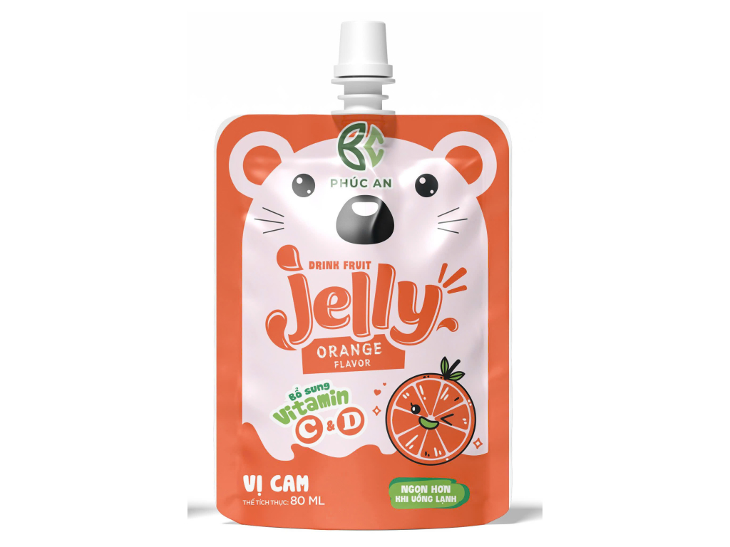 Lốc 10 túi thạch uống trái cây Jelly vị cam 80ml