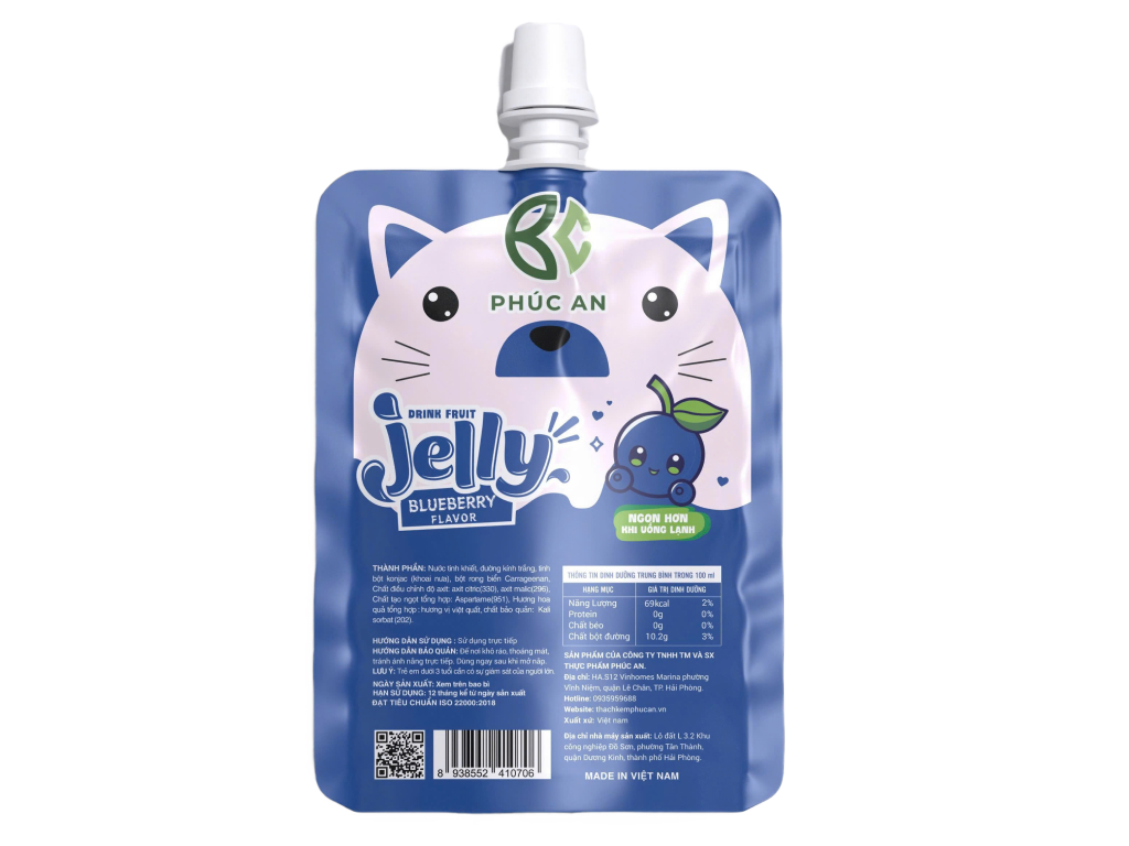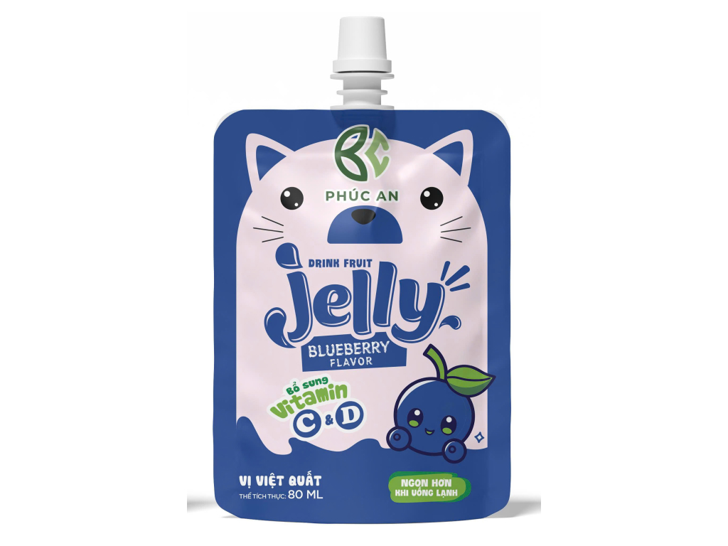 Lốc 10 túi thạch uống trái cây Jelly vị việt quất 80ml