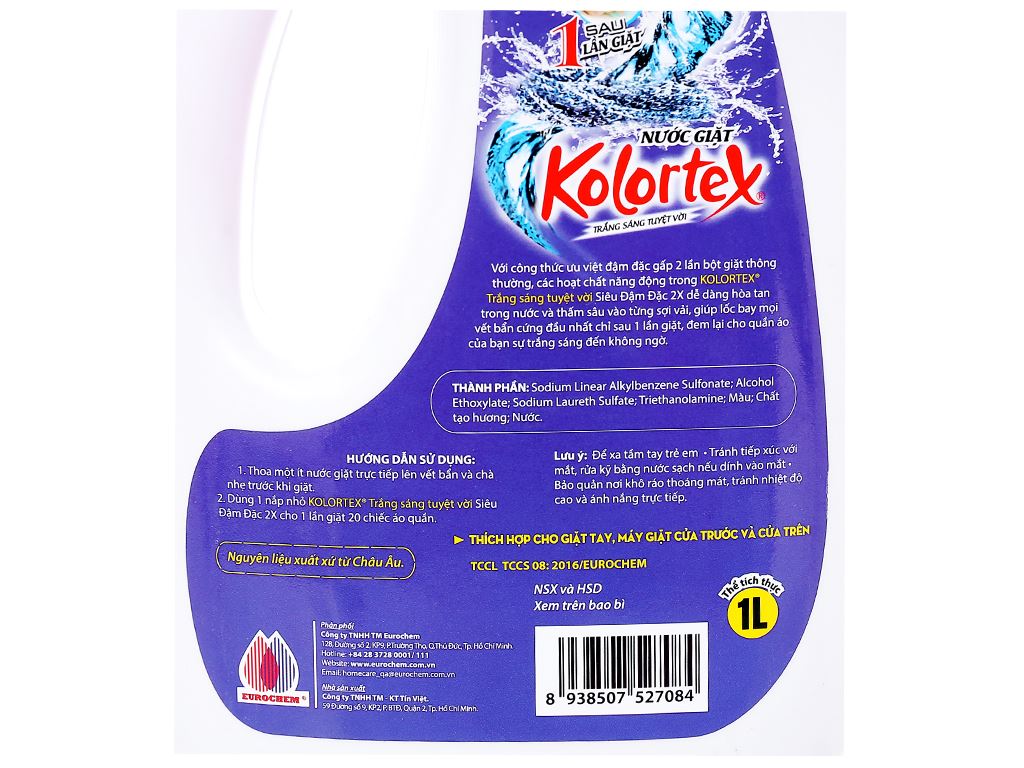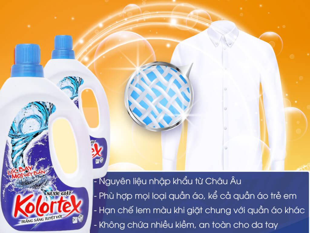 Nước giặt Kolortex trắng sáng tuyệt vời can 1 lít