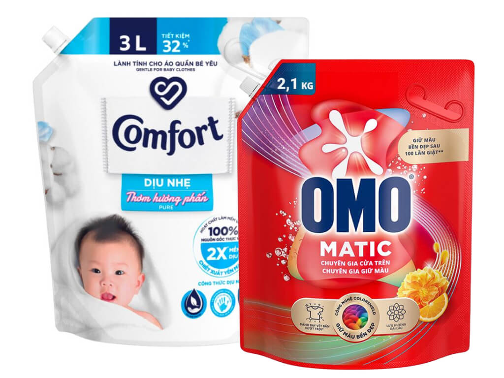 Nước giặt OMO Matic chuyên gia giữ màu 2.1kg và nước xả Comfort dịu nhẹ hương phấn 3 lít
