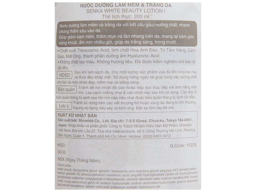 Nước dưỡng làm mềm và trắng da Senka 200ml