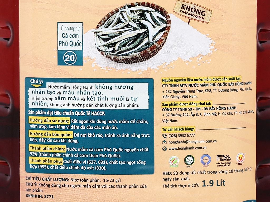Nước mắm cao đạm Hồng Hạnh 20 độ đạm chai 1,9 lít