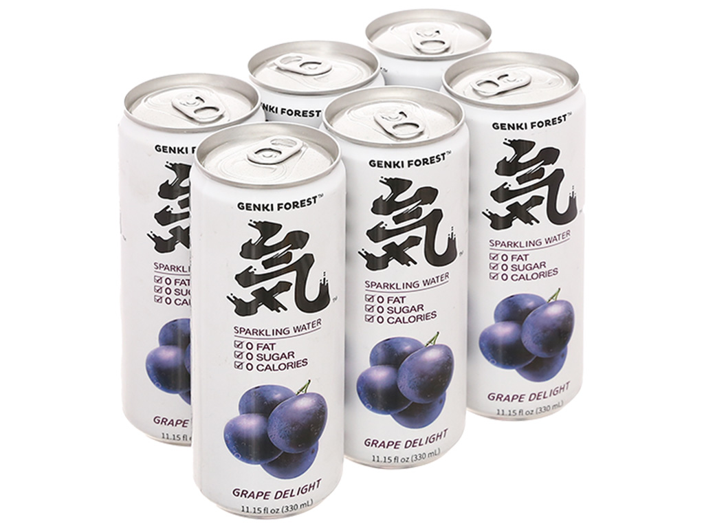 6 lon nước uống có ga GENKI vị nho đen 330ml
