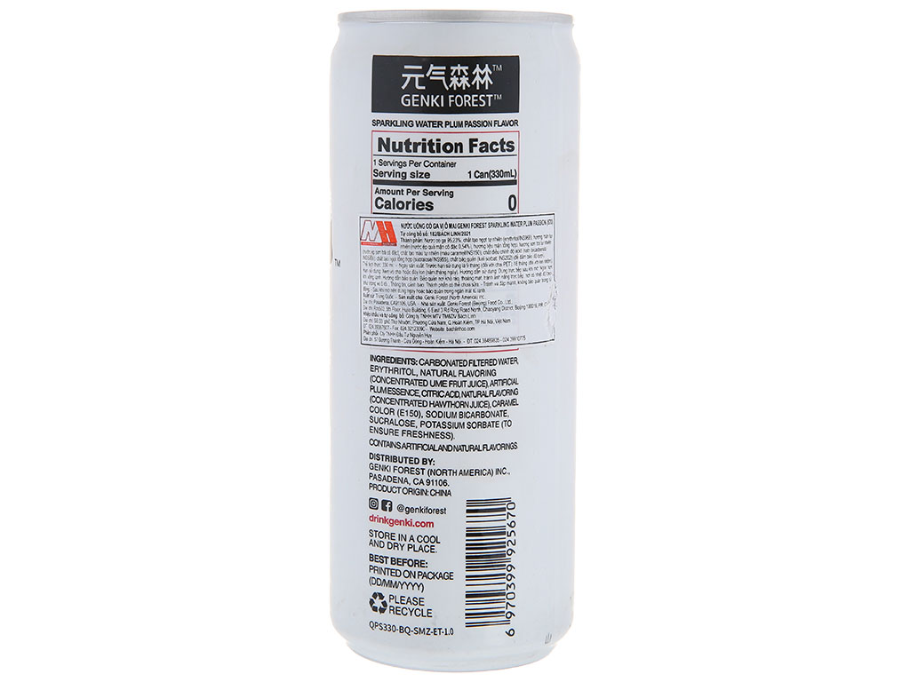6 lon nước uống có ga GENKI vị ô mai 330ml